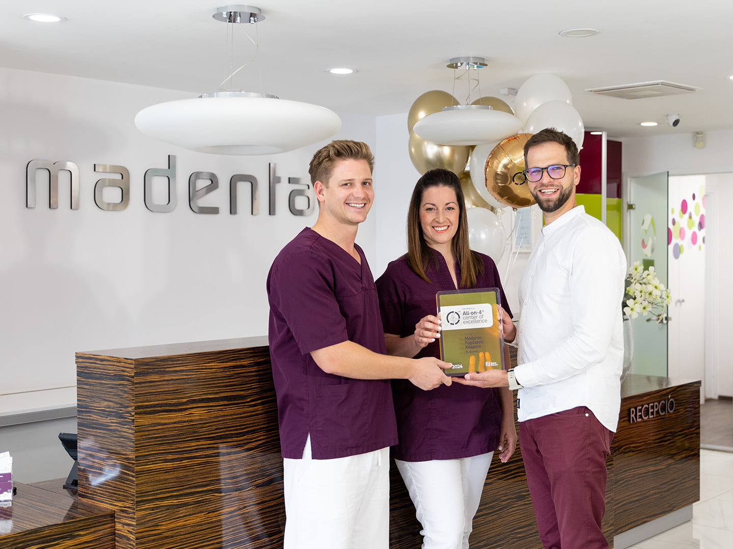 Tandimplantatproducenten Nobel Biocare har tildelt Madenta prisen “All-on-4® Center of Excellence”. Prisen gives til klinikken for det højeste antal All-on-4® behandlinger i Budapest og for enestående faglighed på højeste niveau.